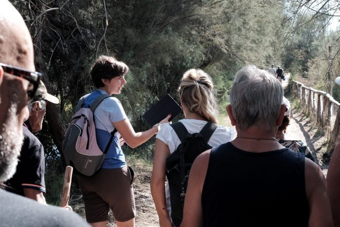 Un viaggio sensoriale fino ad arrivare alla macchia mediterranea. Alla fine di un piccolo anello nel bosco retrodunale si torna sulla spiaggia e ci si dirige nuovamente verso il punto di partenza.