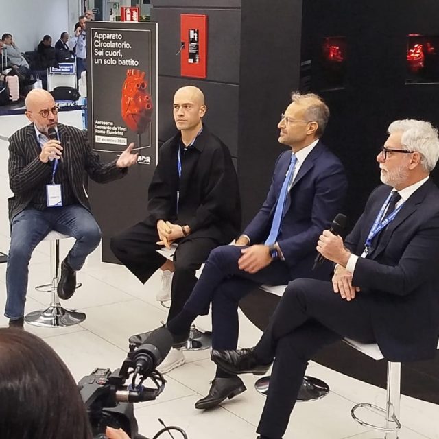 L’opera esposta, legata al tema del battito cardiaco e dell’apparato circolatorio, richiama la dimensione vitale, emotiva e umana che ADR vuole valorizzare accanto all’ingegneria, alla funzionalità e agli investimenti infrastrutturali.
