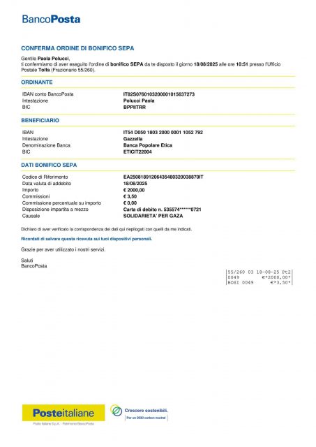 Il bonifico di 2.000 euro a favore di Gazzella Onlus è stato già effettuato, come confermato dagli organizzatori, che hanno anche pubblicato i dettagli economici per garantire la massima trasparenza.