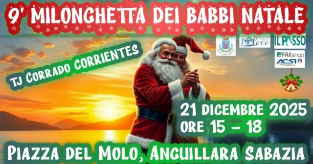 Il Natale ad Anguillara Sabazia si balla in riva al lago. Domenica 21 dicembre 2025, dalle 15:00 alle 18:00, torna la Milonchetta dei Babbi Natale, giunta quest’anno alla sua nona edizione.
