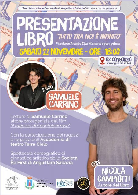 Alle ore 18, nella storica sede dell’ex Consorzio in via Anguillarese 145, l’Amministrazione comunale invita cittadini, lettrici e lettori alla presentazione del romanzo “Tutto tra noi è infinito”,
