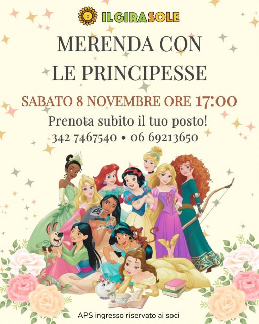 Sabato 8 novembre alle 17:00 in via della Macchia 35, una magica merenda con corone, favole e sorrisi.