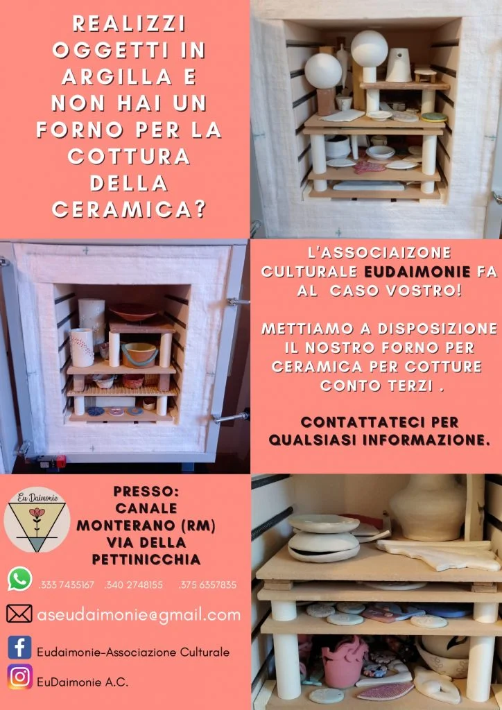 Realizzi oggetti in argilla e non hai un forno per la cottura della ceramica? L’Associazione Culturale EuDaimonie fa al caso vostro! Mettiamo a disposizione il nostro forno perceramica per cotture conto terzi. Contattaci per qualsiasi informazione.