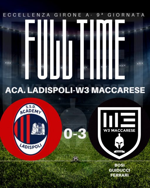 Maccarese cinico sul campo del Ladispoli. Nel primo tempo gli ospiti indirizzano la partita con i goal di Bosi e Guiducci. Nella ripresa Ferrari chiude la partita con un secco 0-3 per gli ospiti.
