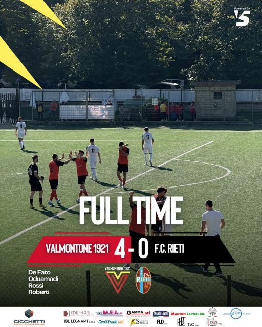Goleada del Valmontone ai danni del Rieti. La partita si sblocca già dopo cinque minuti con De Fato e al 13esimo i padroni di casa sono già sul doppio vantaggio con il goal di Oduamadi. Nella ripresa Rossi trasforma un rigore e Roberti chiude la partita nei minuti di recupero sul 4-0 per i padroni di casa.