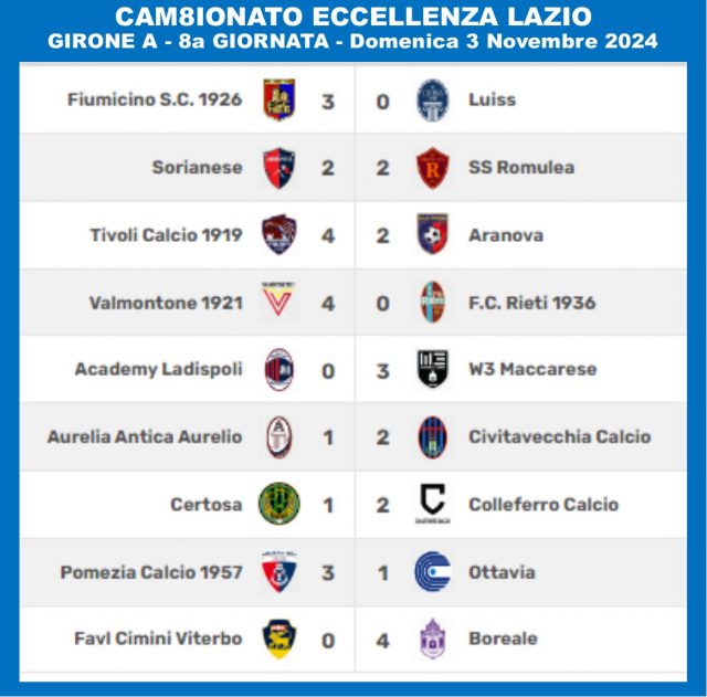 Succede tutto nella ripresa sul campo del Certosa. Gli ospiti vanno in vantaggio poco dopo l’inizio del secondo tempo con Ferri. Al 20esimo il Certosa pareggia con Desideri ma cinque minuti dopo il Colleferro va di nuovo avanti con il goal di Pompili che chiude la partita sull’1-2.