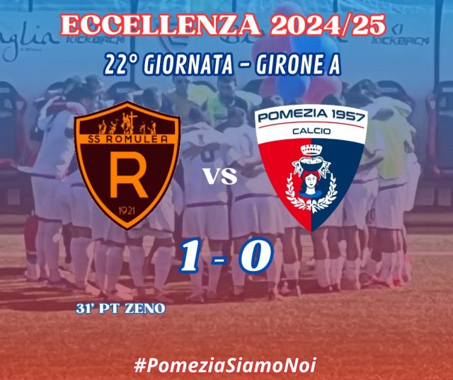 Sconfitta pesante in chiave classifica e a livello di morale per il Pomezia che oggi cade 1-0 al Campo Roma contro la Romulea che trova i tre punti grazie alla rete di Zeno al 31′ del primo tempo.
