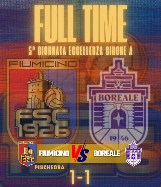 Pareggio che va stretto ai padroni di casa. Un eurogoal di Pischedda porta avanti il Fiumicino all’inizio del secondo tempo. I padroni di casa però nonostante le due occasioni create non riescono a chiudere la partita e arriva il pareggio della Boreale su rigore per l’1-1 definitivo.