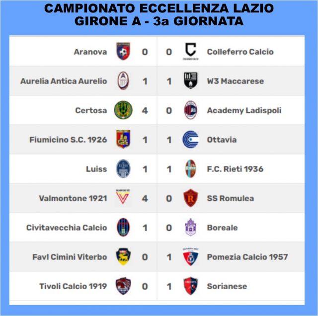 Il Civitavecchia vince in extremis. Pareggio per Fiumicino e Maccarese. Male Ladispoli.