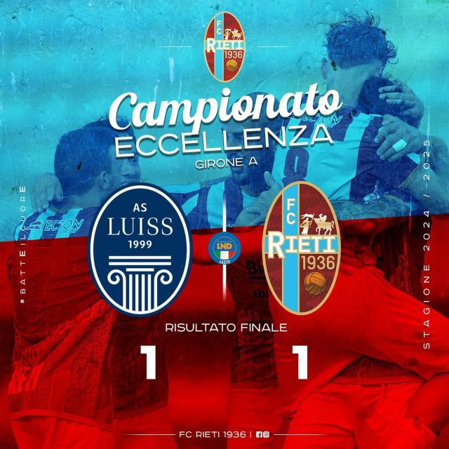 Partita sostanzialmente equilibrata ma che lascia un pò di amaro in bocca al Rieti che passa in vantaggio con il goal di Giannecchini ma si fa raggiungere nel recupero dalla rete di D’angolo.
