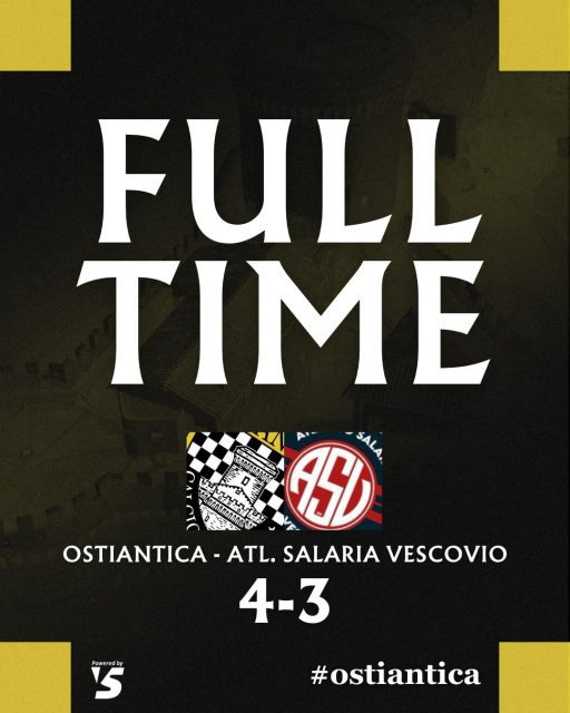 Partita spettacolare quella tra Ostiantica e Atletico Salaria Vescovio. Per i padroni di casa in rete Palermo, De Santis e doppietta di Sesta. Non bastano per gli ospiti i goal di Franco, Sebastianelli e Losi.