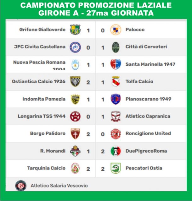 Pareggio tra Tarquinia e Pescatori Ostia per 2-2, per i padroni di casa in goal Bucri e Pastorelli mentre per gli ospiti Valentini e Villanueva.