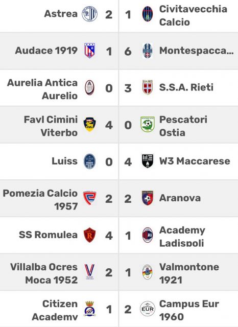 Astrea 2 – Civitavecchia Calcio 1: Nonostante la sicurezza matematica del quinto posto i nerazzurri di mister Scudieri, alla sua ultima da allenatore al Civitavecchia, partono bene andando in vantaggio con Ruggiero ma i padroni di casa riescono a ribaltare il risultato con le reti di Mariani e di Castro che riescono a trascinare i propri compagni, grazie anche alla vittoria del Montespaccato sul campo dell’Audace a salvarsi evitando i playout che avrebbe dovuto disputare con quest’ultima, ma che per il distacco di punti fra le due squadre regalano all’Atrea la salvezza diretta.