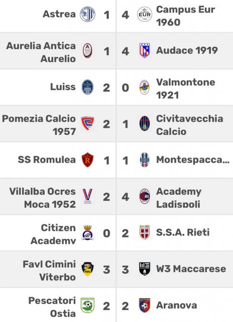 Pomezia Calcio 1957 2 – Civitavecchia Calcio 1920 1: Si ferma a 4 la striscia di risultati utili consecutivi per i nerazzurri di mister Scudieri che, nonostante il vantaggio realizzato dallo stesso Legnante i padroni di casa la ribaltano col protagonista che non ti aspetti; il difensore centrale Costantini realizza una doppietta e fa sognare ancora il Pomezia.