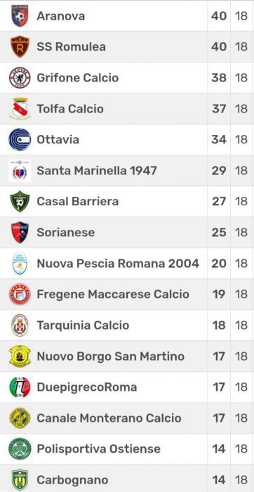 Si intensifica la grande lotta per il titolo in Promozione: Aranova e Grifone, nonché prima e terza in classifica, si incontrano in un match pronto a regalare emozioni. Sfide più facili per Tolfa e Romulea, rispettivamente contro Ostiense e Canale Monterano. L’Ottavia è impegnata sull’ostico campo del Fregene Maccarese, mentre il Santa Marinella è pronto a ripartire col nuovo tecnico nella sfida interna contro il Pescia Romana.