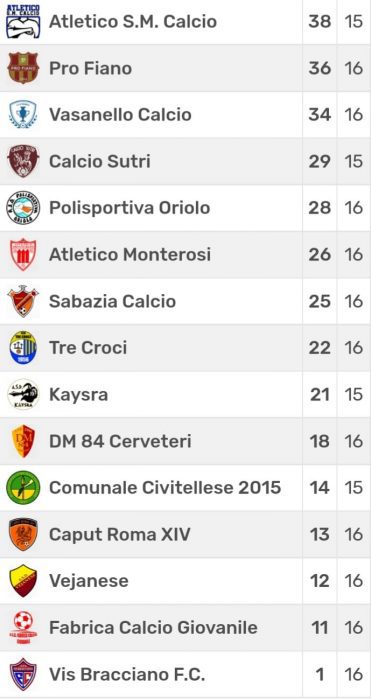 L’Atletico S.M. si gioca un pezzo di scudetto in casa contro il Pro Fiano: la squadra è al completo e spera di poter contare sui giovani per reggere psicologicamente una sfida così difficile. Sutri e Vasanello, le altre principali inseguitrici giocano in casa contro DM 84 Cerveteri e Sabazia: per la compagine di Anguillara si tratta di uno degli ultimi treni per rilanciarsi in zona playoff. Va meglio al Kaysra, atteso da una sfida sulla carta non proibitiva, contro la Caput Roma XIV.