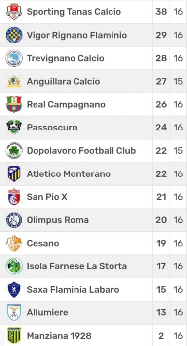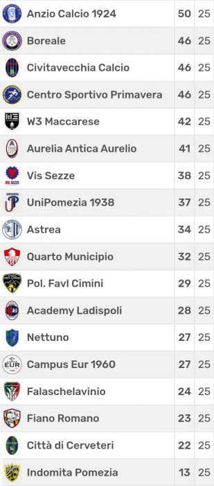 Anche nel girone C di Prima Categoria la giornata ormai alle porte ci regala la sfida tra le prime due: l’Anguillara, a due lunghezze dal secondo posto, è pronta a sfruttare l’opportunità contro l’Olimpus Roma, mentre non potrà fare lo stesso il Trevignano, fermato dal turno di riposo. Calendario che sorride invece alle due squadre portuali: il DLF gioca sul campo dell’Isola Farnese, mentre la San Pio X attende il Manziana, fanalino di coda. Passoscuro – Real Campagnano vale un posto ai playoff.