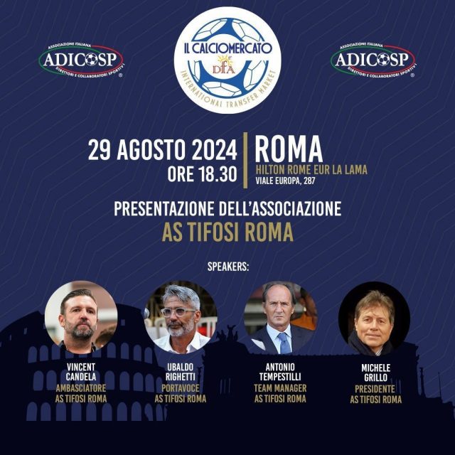 Il 29 agosto 2024, ore 18:30, all’ HILTON ROME EUR LA LAMA con la presenza di stelle della A.S ROMA