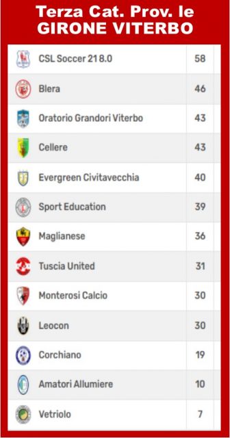 Una stagione perfetta, da incorniciare, quella della CSL Soccer di Civitavecchia, che conquista con merito il girone di Viterbo del campionato provinciale di Terza Categoria, guadagnandosi così la promozione in Seconda Categoria.