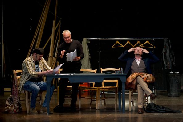 “Non è vero che si vive una volta sola, si vive ogni giorno e si muore una volta sola”. Certi di esistere è la storia di cinque attori salvati e vissuti da sempre all’ombra di un autore padre padrone che gli ha dato la linfa affinché i destini nati sotto cattive stelle di ognuno di loro si ammantassero delle vesti dorate del