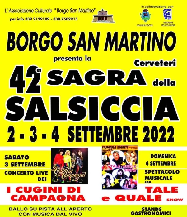 La storica sagra dedicata alla “Salsiccia Sanmartinese”, nella cornice di Borgo San Martino di Cerveteri, è pronta ad accogliere cittadini e turisti per continuare la tradizione.