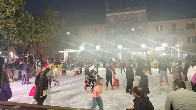 pattinaggio sul ghiaccio di Piazza Aldo Moro, attrattiva del nostro Natale Caerite che sta registrando un