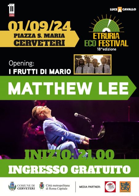 Vi aspettiamo a Cerveteri, in Piazza Santa Maria, ad Etruria Eco Festival, con Matthew Lee”.