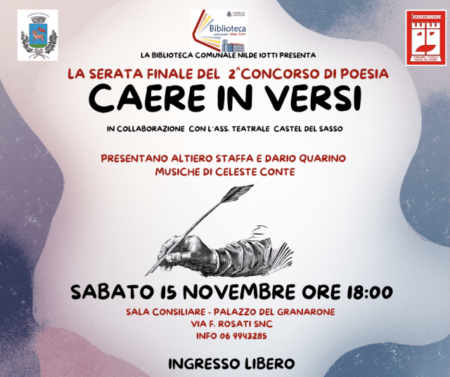 Il Comune di Cerveteri ha reso noti i titoli delle poesie finaliste della seconda edizione del Premio Letterario di Poesia “Caere in versi”, un’iniziativa promossa attraverso la Biblioteca comunale “Nilde Iotti” e rivolta a chi della parola fa strumento di verità, bellezza e ricerca.