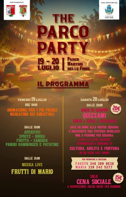 Sabato 20 Luglio: La seconda giornata di “The Parco Party” inizierà alle ore 20:00 con un’attività di gruppo: