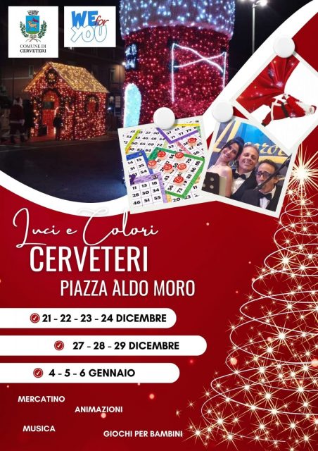 Animazione e giochi per bambini, musica, tombolate e un ricco mercatino di artigianato: ad organizzarlo, in maniera congiunta, sono il Comune di Cerveteri e l’Associazione WeForYou all’interno del Villaggio di Natale di Piazza Aldo Moro.