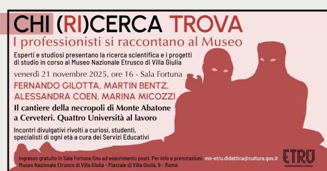 Qui, per il ciclo di incontri divulgativi “Chi (RI)cerca trova”, si terrà un incontro pubblico dedicato al lungo cantiere di ricerca sulla necropoli di Monte Abatone, una delle aree archeologiche più estese e meno note del territorio ceretano.