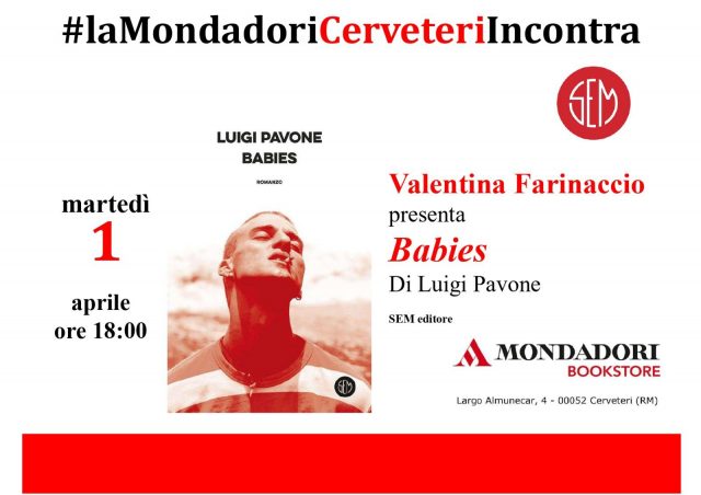 Prosegue la rubrica #LaMondadoriCerveteriIncontra con il terzo appuntamento dedicato al libro “Babies” di Luigi Pavone, che si terrà martedì 1 aprile alle ore 18:00.