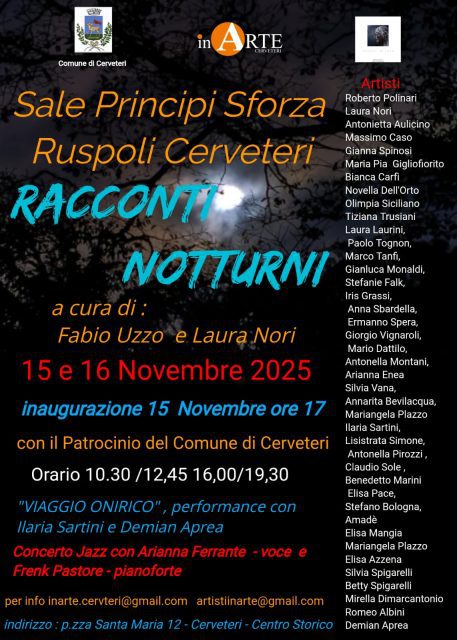 In un tempo in cui la velocità domina, fermarsi di fronte a un quadro, a una voce, a un’emozione condivisa, può restituire senso. “Racconti Notturni” è questo: un invito a rallentare, ascoltare e tornare a sognare. Cerveteri, ancora una volta, si conferma terra viva di arte e visioni.