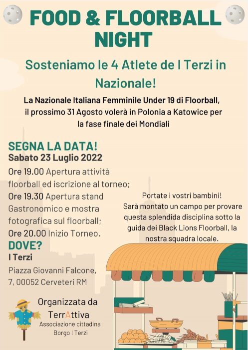 Per loro infatti, Terrattiva – Associazione Cittadina del Borgo, ha organizzato per la serata di sabato 23 luglio “Food & Floorball Night”, un evento di raccolta fondi per le ragazze azzurre e aiutarle a sostenere le spese di viaggio e permanenza in terra polacca in occasione della rassegna iridata che si svolgerà a fine agosto.