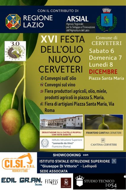 E per chi ama mettere le mani in pasta, lo showcooking organizzato dagli studenti dell’Istituto Alberghiero “Giuseppe Di Vittorio” di Ladispoli offrirà ricette della tradizione reinterpretate con l’olio nuovo.
