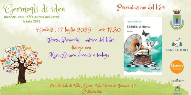 Nel corso dell’incontro sarà presentato il libro “Il labirinto di Minerva” di Teresa Piciochi, edito da Guida Editori. L’autrice dialogherà con Maria Bianco, docente e teologa, in un confronto aperto su temi letterari e sociali.