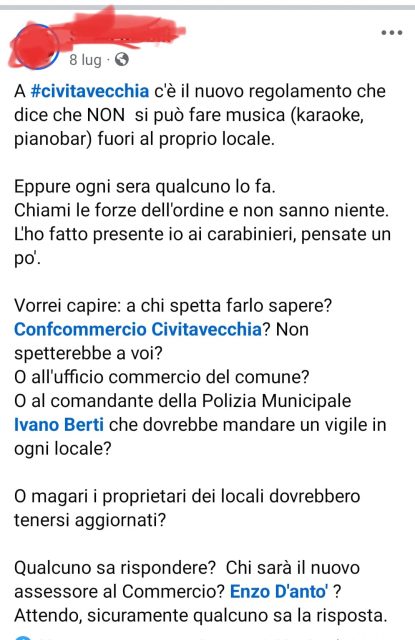 Ci segnalano che su Facebook ci sono pochi civitavecchiesi, in particolare una cittadina “nota”, che ne hanno fatto una propria battaglia personale.