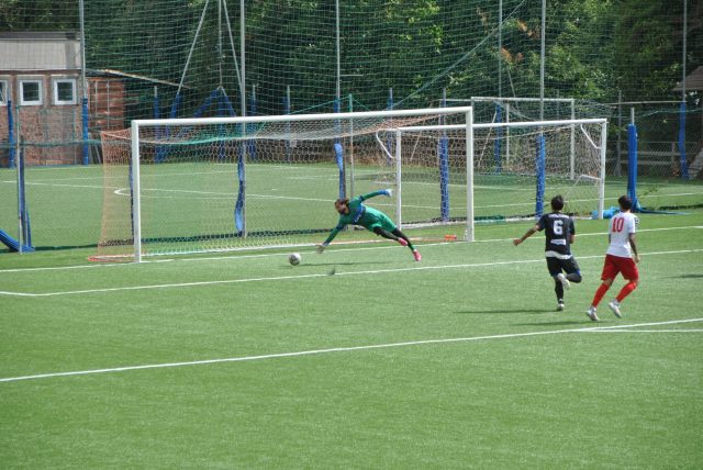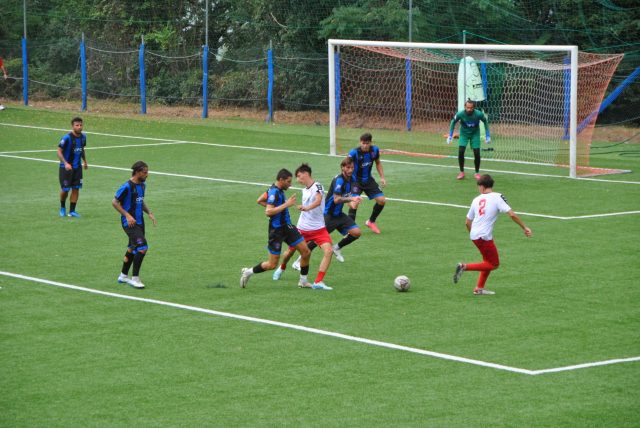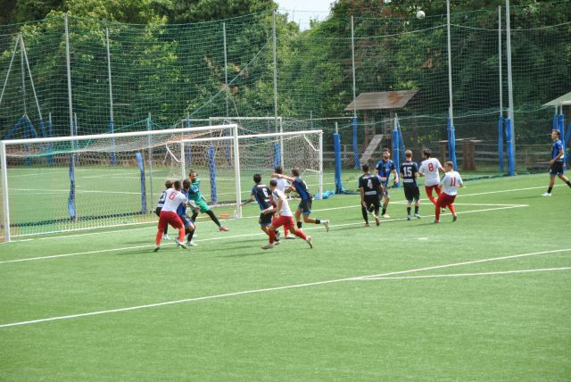 Al 36′ il Tolfa trova il pareggio: con un lancio lungo dalla propria area di rigore i biancorossi partono in