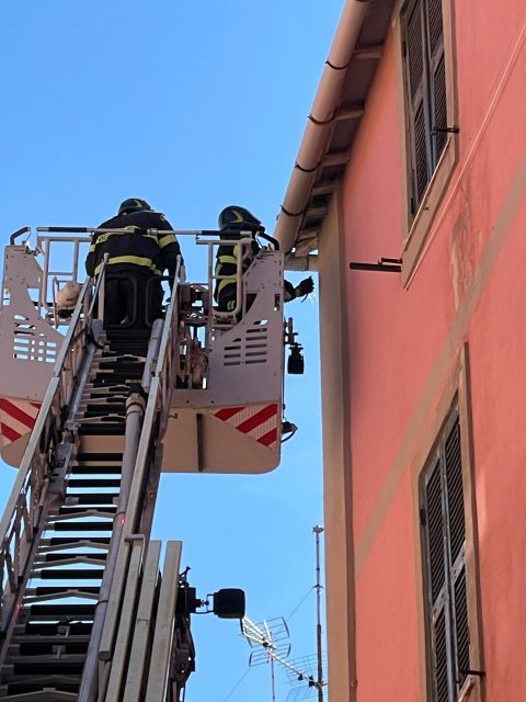L’intervento dei Vigili del Fuoco con le scale ha salvato il volatile, un rondone, che era rimasto impigliato ad un filo di nylon.