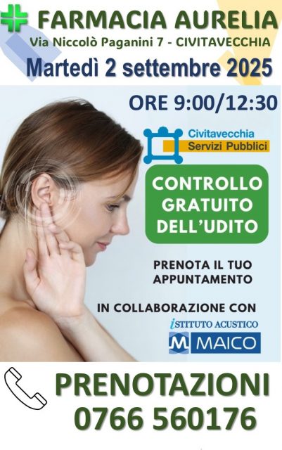 La Farmacia Comunale “Aurelia” di Civitavecchia invita la cittadinanza a partecipare alla Giornata della Prevenzione Uditiva,