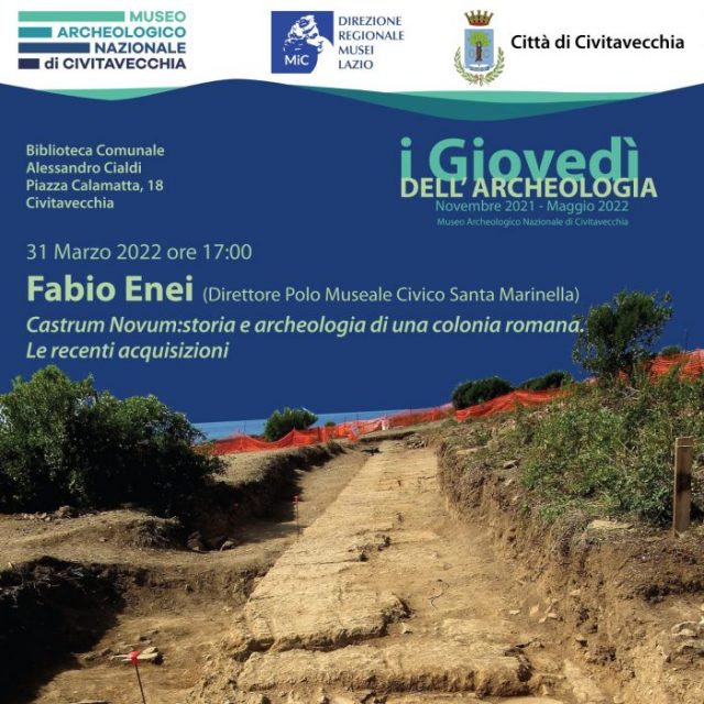 Per il ciclo di incontri I giovedì dell’Archeologia, organizzati dal Museo Archeologico Nazionale di Civitavecchia in collaborazione con il Comune di Civitavecchia, in programma il giovedì alle ore 17.00 presso la Biblioteca Comunale “ “A. Cialdi”, Piazza Calamatta, 18 – Civitavecchia
