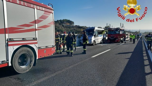 Per cause in corso di accertamento un mezzo pesante, una bisarca, ha impattato violentemente con un autofurgone da nove posti che trasportava turisti, probabilmente provenienti dalle navi da crociera sbarcati a Civitavecchia.