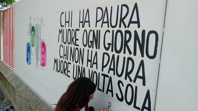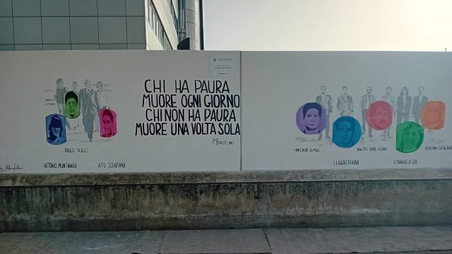 Grazie al nulla osta del presidente del tribunale, la giusta sinergia dei vari uffici comunali e alla preziosa collaborazione dei gestori del Bar dello Studente, in via dell’Immacolata sono stati realizzati due murales dedicati alle scorte di Falcone e Borsellino.