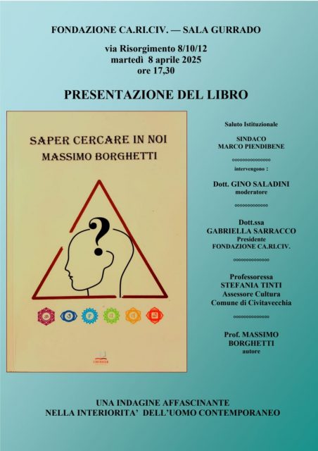 Si svolgerà l’8 aprile alle 17:30, presso la sala Gurrado della Fondazione CaRiCiv, la presentazione del libro “Saper Cercare in Noi”, scritto dal professor Massimo Borghetti.