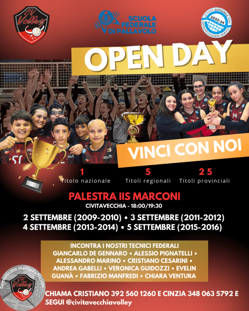 Dal 2 al 5 settembre, presso l’IIS Marconi, dalle ore 18 alle 19:30, la società rossonera organizza quattro giornate di Open Day rivolte ai ragazzi e alle ragazze nati tra il 2009 e il 2016.
