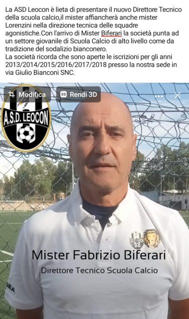 Sui Social la ASD Leocon annuncia il nuovo direttore tecnico della scuola calcio Fabrizio Biferari.