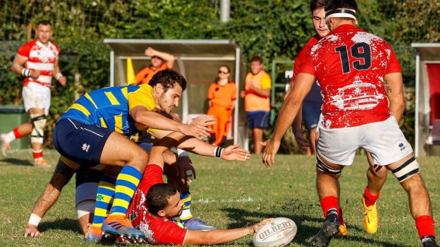 Partita sempre condotta dai biancorossi sin dalle fasi iniziali, con mete al 5° ed al 8° con Vender e Auriemma, ambedue trasformate da Tremulo e siamo sul 14 a 0.