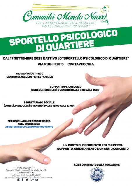 La Comunità Mondo Nuovo OdV annuncia la riattivazione dello “Sportello Psicologico di Quartiere” a Civitavecchia,