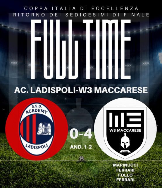 W3 corsara in quel di Ladispoli che si aggiudicano il passaggio del turno in Coppa Italia rifilando un severo 0-4 ai padroni di casa dell’Academy Ladispoli.