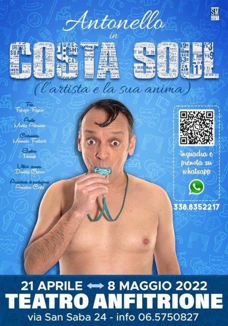 Dal 21 Aprile all’ 8 Maggio 2022 Antonello Costa salirà sul palco del Teatro Anfitrione con il suo nuovo spettacolo “Costa Soul (l’artista e la sua anima)”.